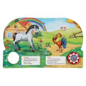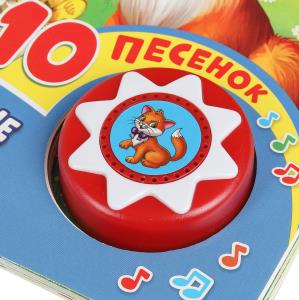 Аннотация: Малыш будет с удовольствием рассматривать яркие страницы с изображением любимых персонажей, читать и слушать песенки. Одно нажатие на кнопку – песенка включится, второе нажатие – заиграет следующая песня. Книжка сделана из плотного картона, поэтому родители могут не опасаться за её сохранность. Благодаря компактному формату её удобно брать с собой.